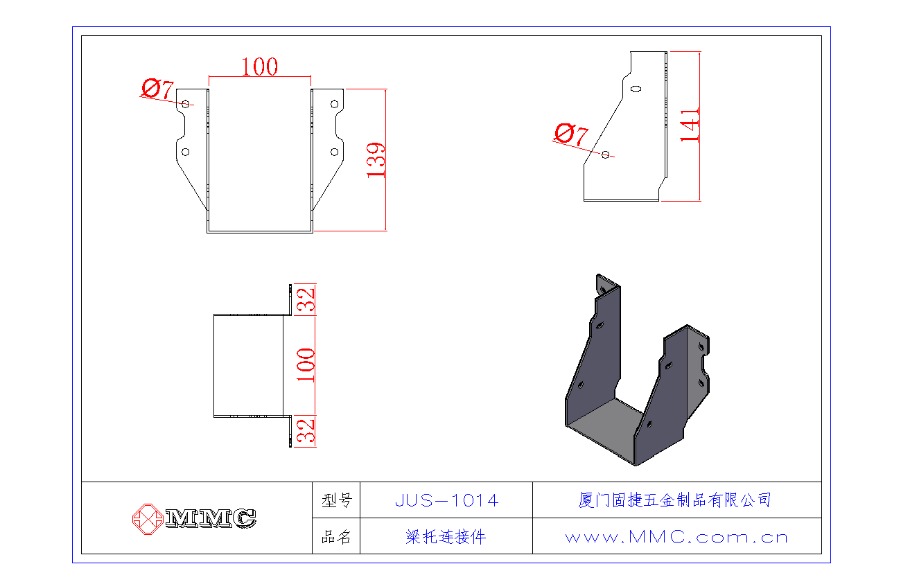 JUS-1014 梁托-U型挂件-木结构别墅金属配件