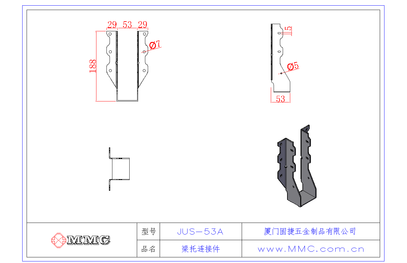 JUS-53A 梁托-U型挂件-龙骨与横梁水平连接件-木结构别墅金属配件