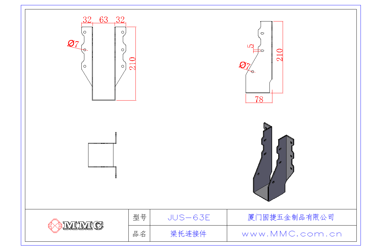 JUS-63E 梁托-U型挂件-龙骨与横梁水平连接件-木结构别墅金属配件