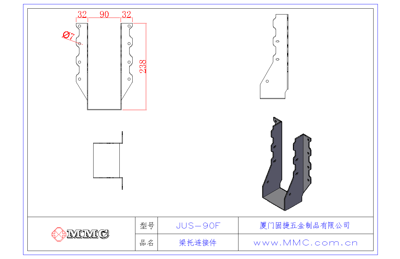 JUS-90F 梁托连接件-U型挂件-木屋配件