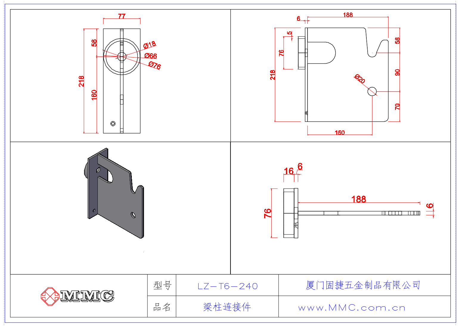 LZ-T6-240 梁柱连接件-日式连接件-隐藏式T型连接件