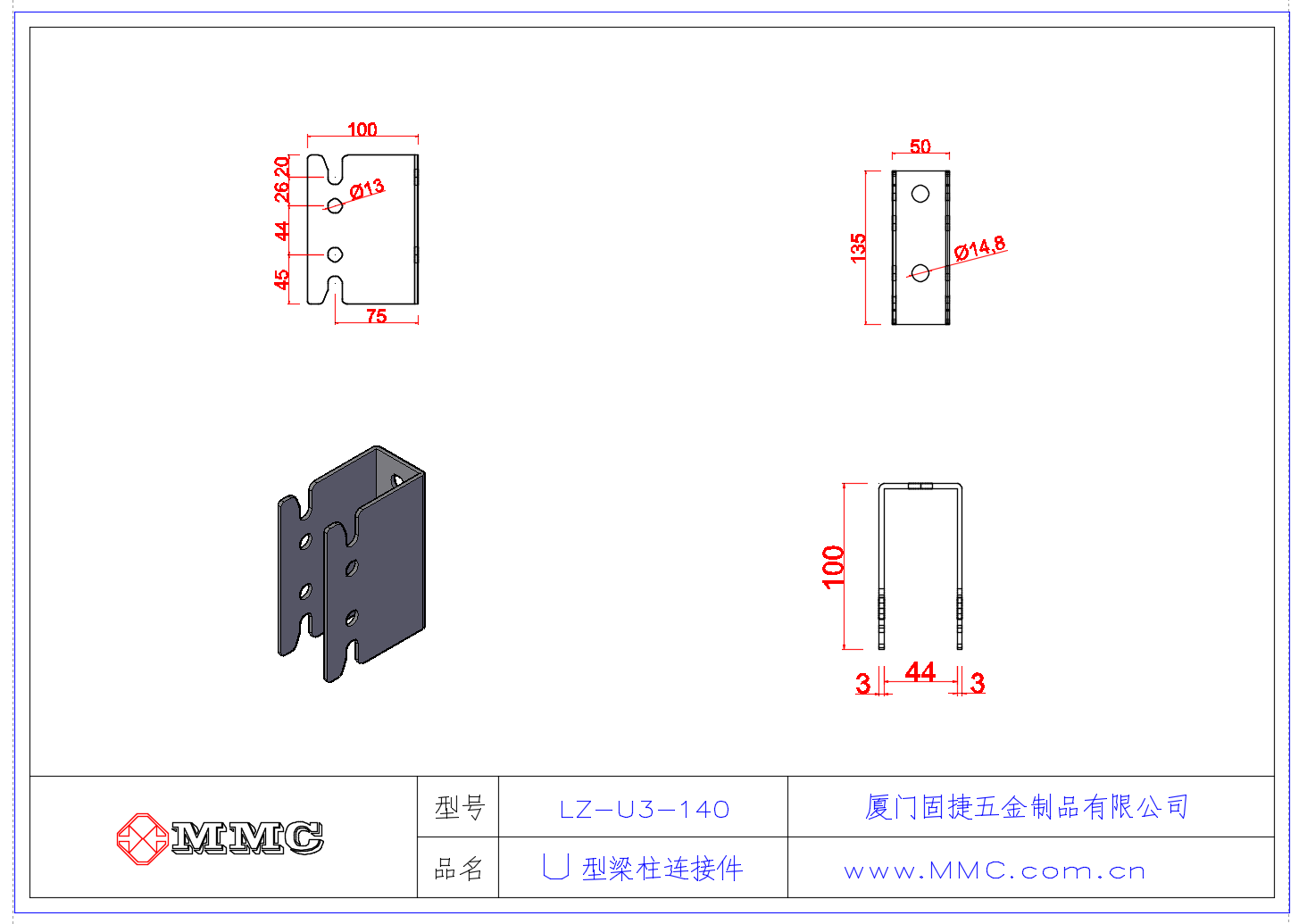 LZ-U3-140 梁柱连接件-日式连接件-隐藏式U型连接件