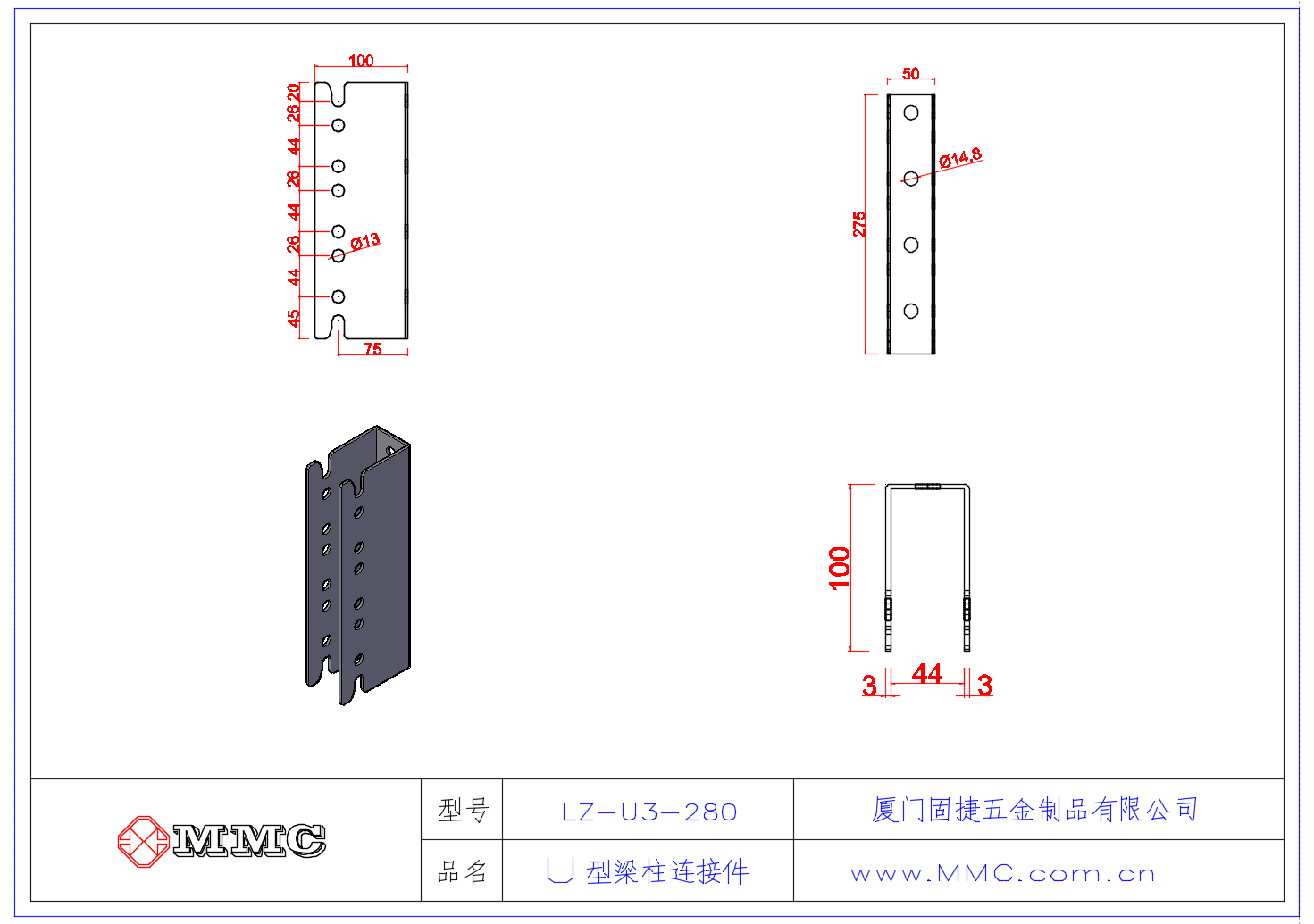 LZ-U3-280 梁柱连接件-日式连接件-隐藏式U型连接件
