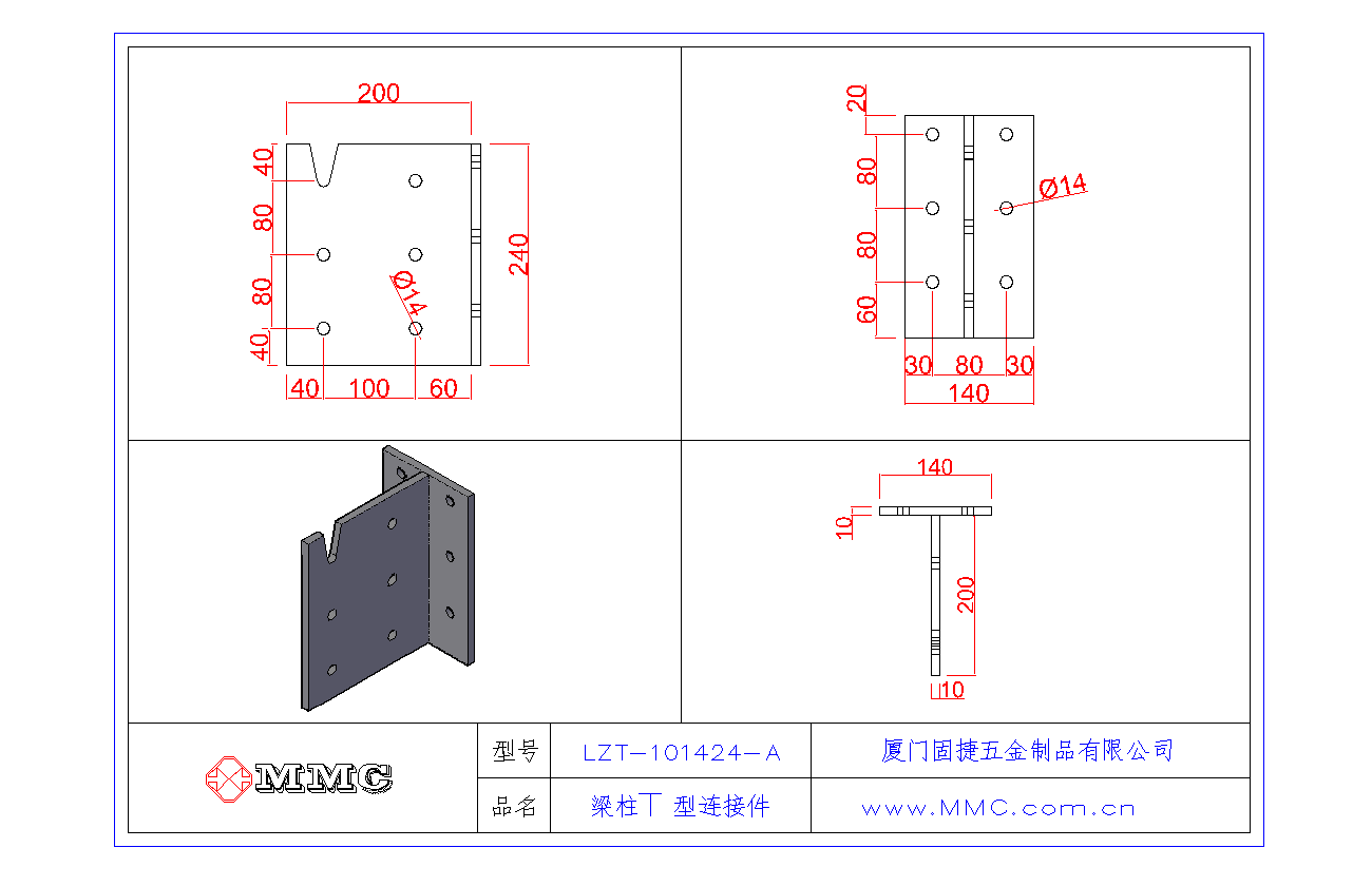 LZT-101424-A 梁柱T型隐藏式连接件-梁柱连接件-T型连接件-隐藏式连接件