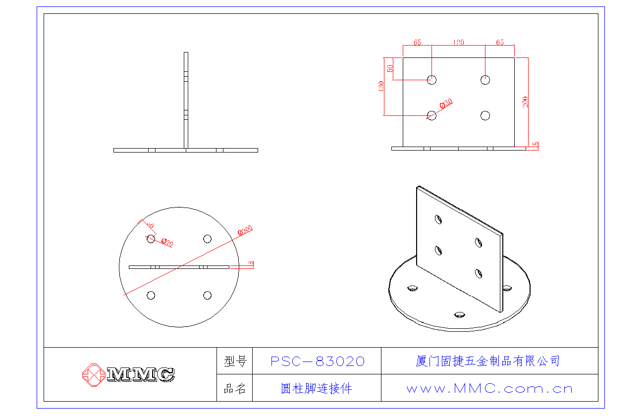 PSC-83020 圆形柱脚连接件-圆型立柱连接件-圆柱连接件-T型连接件