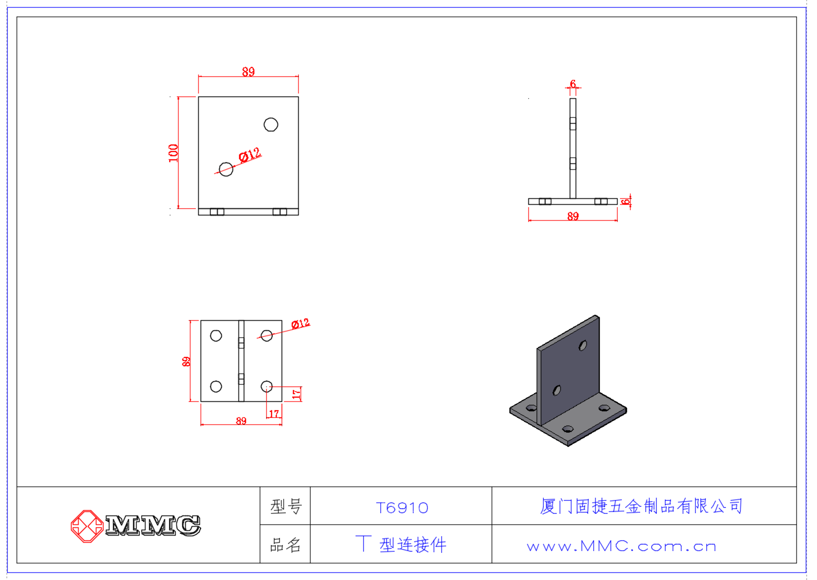T6910 T型柱脚连接件-T型角码连接件-T形