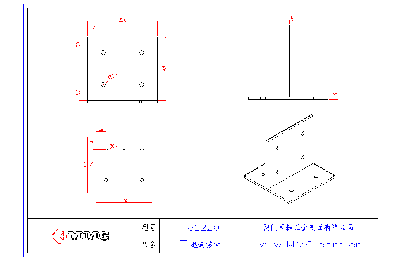 T82220 T型柱脚连接件-T型角码连接件-T形