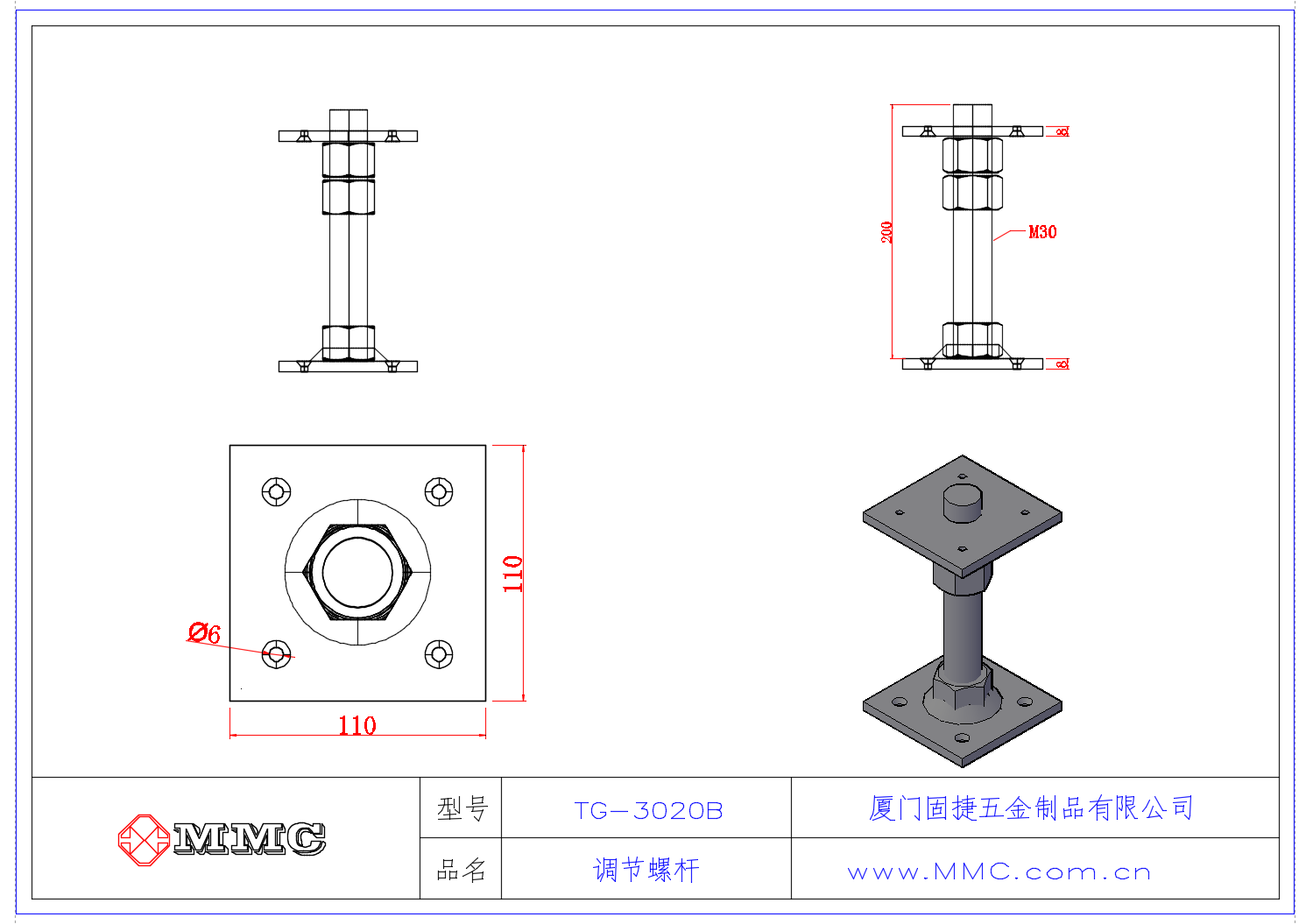 TG-3020B 升降螺杆-调节螺杆-调节螺栓-伸缩螺杆-木屋连接件