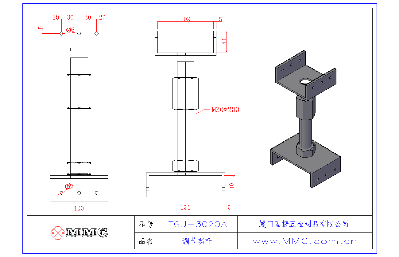 TGU-3020A 升降螺杆-调节螺杆-调节螺栓-伸缩螺杆-木屋连接件